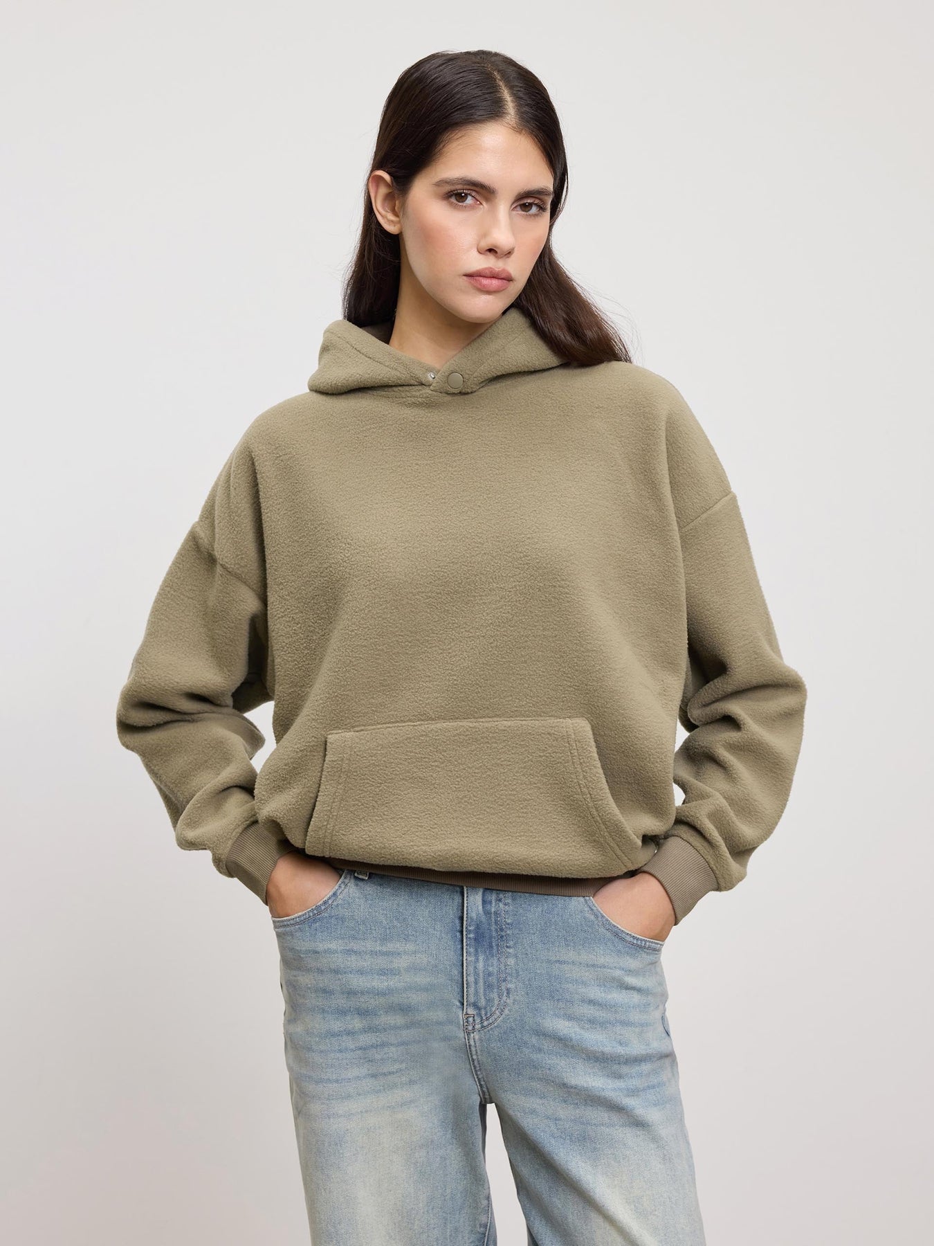 Snygg Vinterhuvtröja | Dam Oliv Fleece Huvtröja
