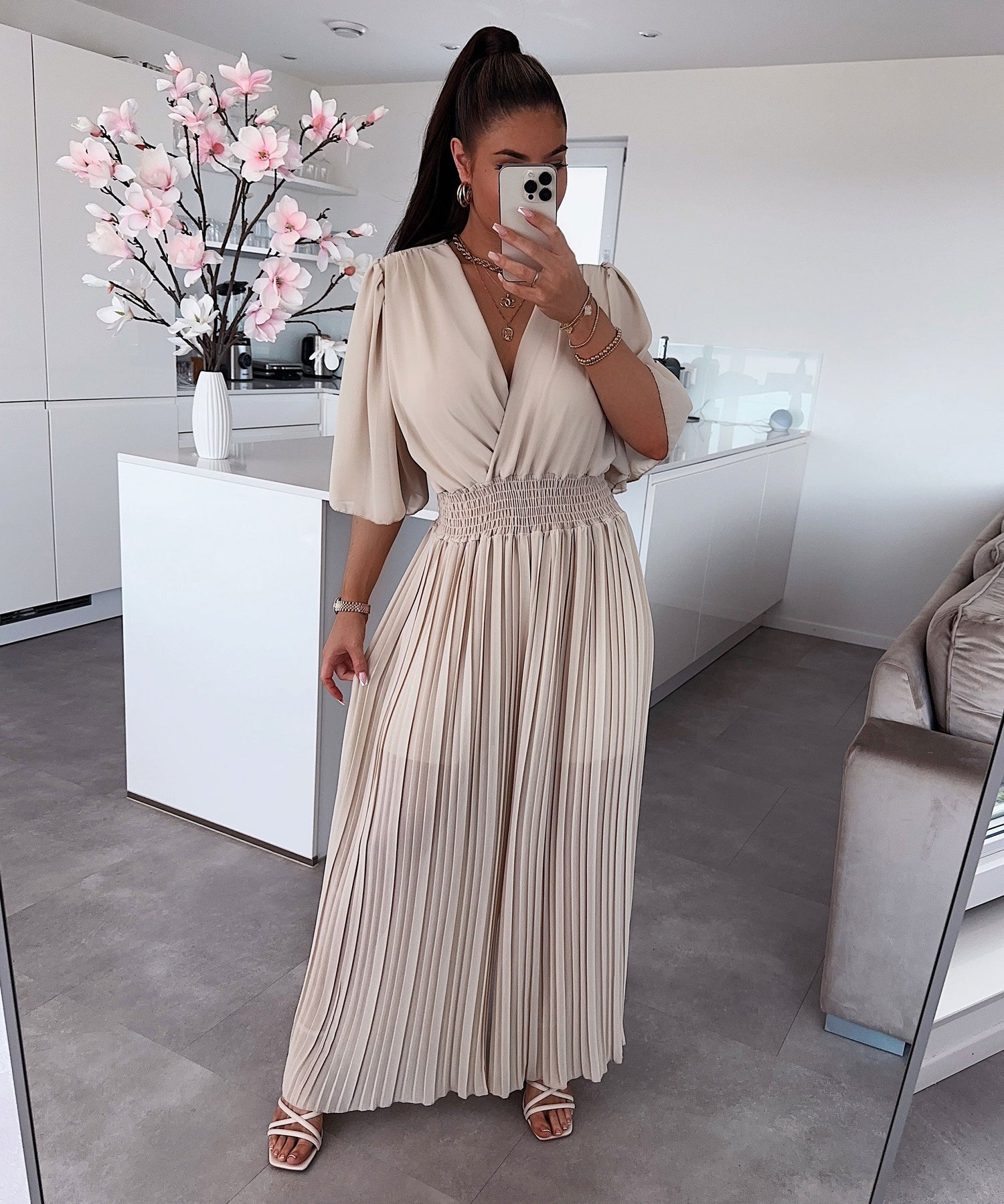 Stariel Eleganta Endelad Utstyrsel i beige ger en polerad titt utan ansträngning. Denna eleganta silhuett är designad för att följa med dig från dag till natt och är perfekt för både avslappnad sofistikering och diskret glamour.