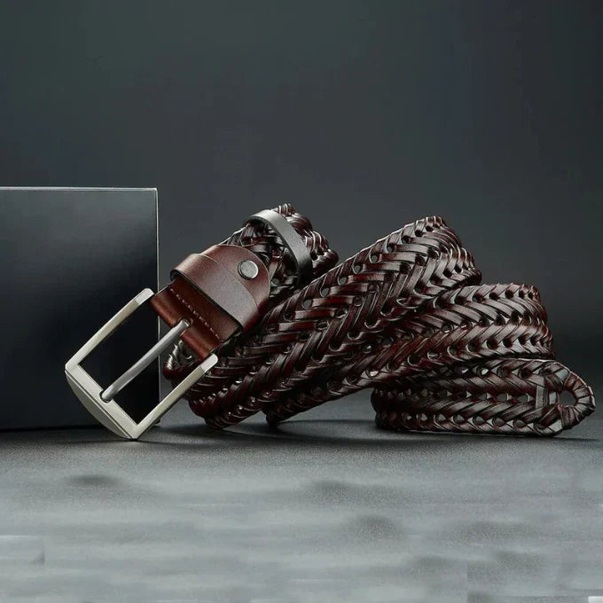 Herr Flätad Utformning och Polerat Spänne Bälte