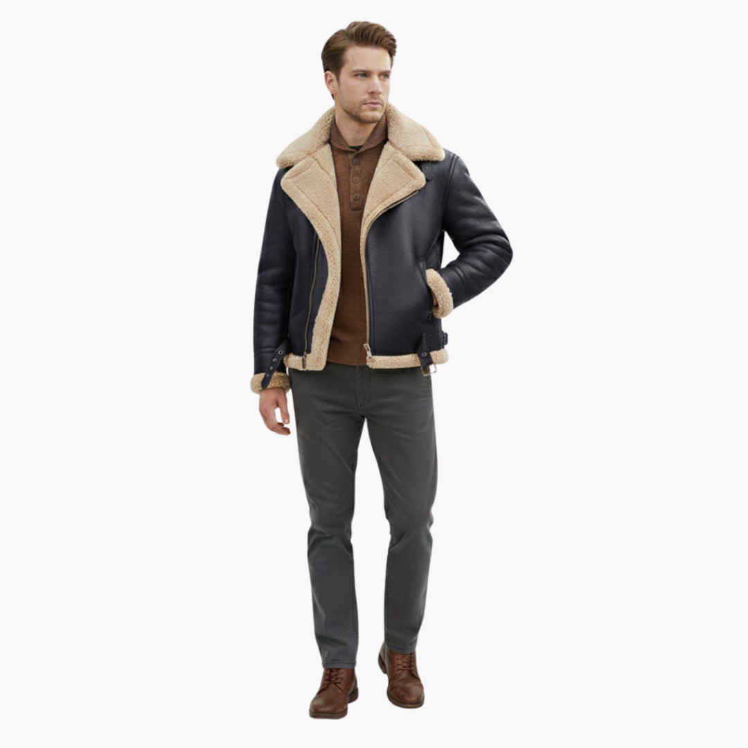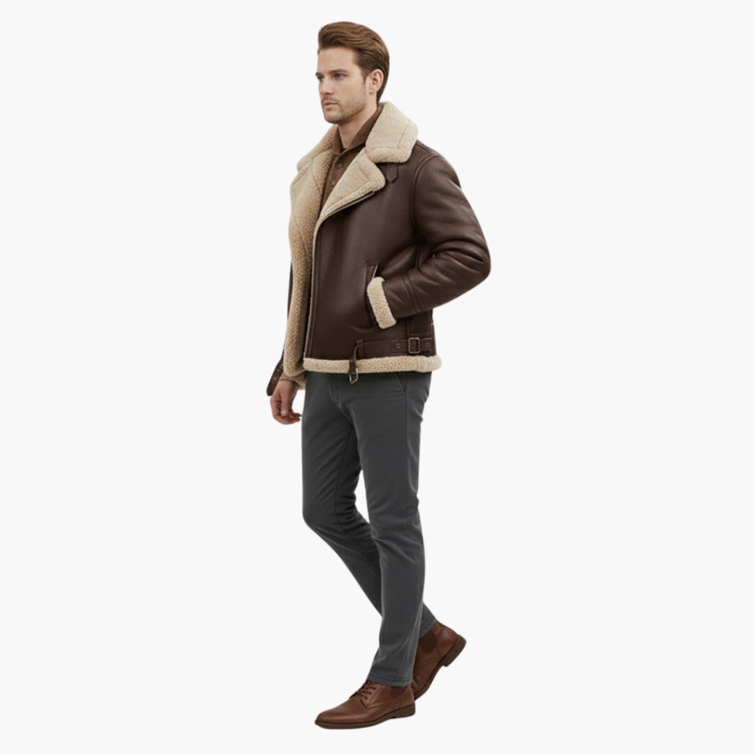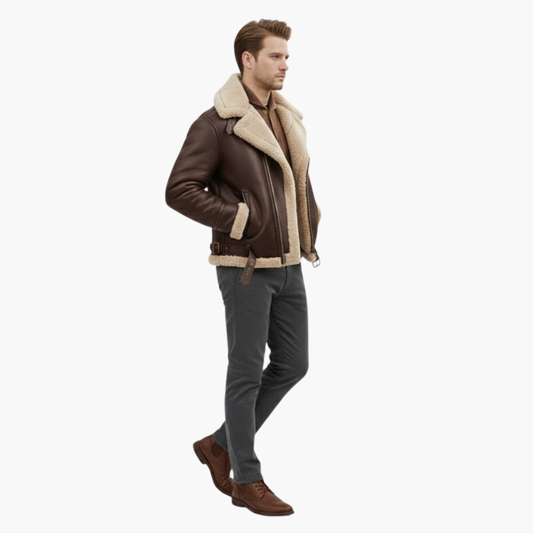 • Fusk-Shearling-Krage Som Lyfter Din Titt: Den mjuka kragen ger omedelbar karaktär och ger din utrusta en raffinerad kant samtidigt som den håller halsen varm. Den ramar in ditt ansikte och förstärker den övergripande silhuetten med en beröring av vintageflygplansstil.