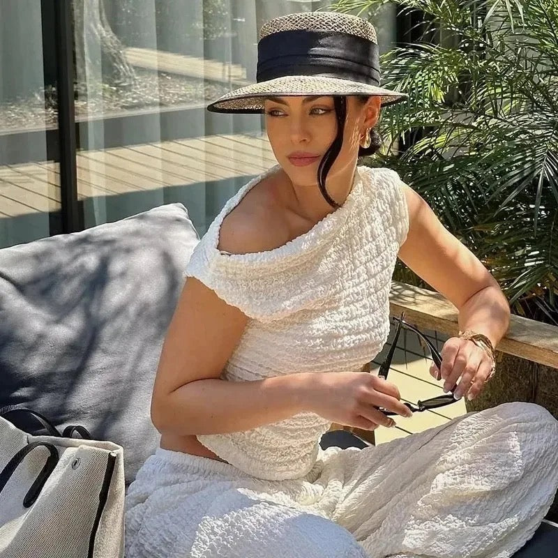 Elvina Co-Ord Uppsättning är din genväg till chic, oavsett om du är på väg till brunch eller bara vill lyfta din vardagslook. Med sina rena linjer och avslappnade samordning gör detta set komfort och självförtroende till dina dagliga väsentligheter.
